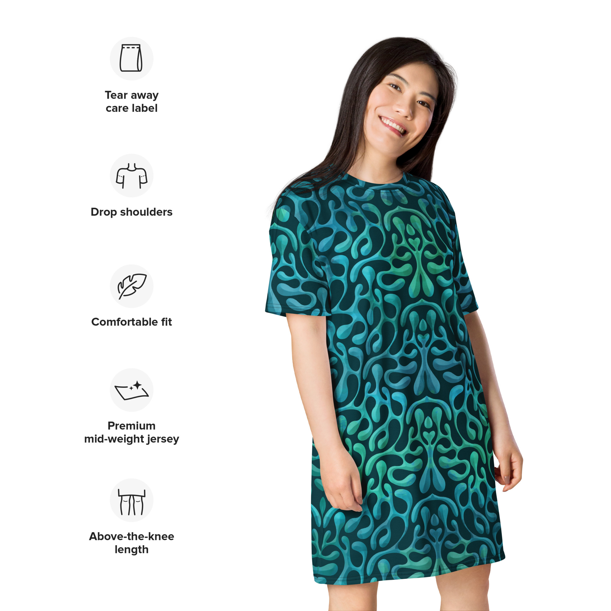 This dress is the swiss knife of all dresses—it’ll look great almost anywhere. Dress it up with a jacket or give it a more casual vibe with a pair of sneakers. Wear it as a nightie or even as a part of your street style outfit—the options are endless. The comfortable oversize fit proves that comfy can also be stylish!